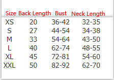 Size: Back Length  * Chest  *  Neck